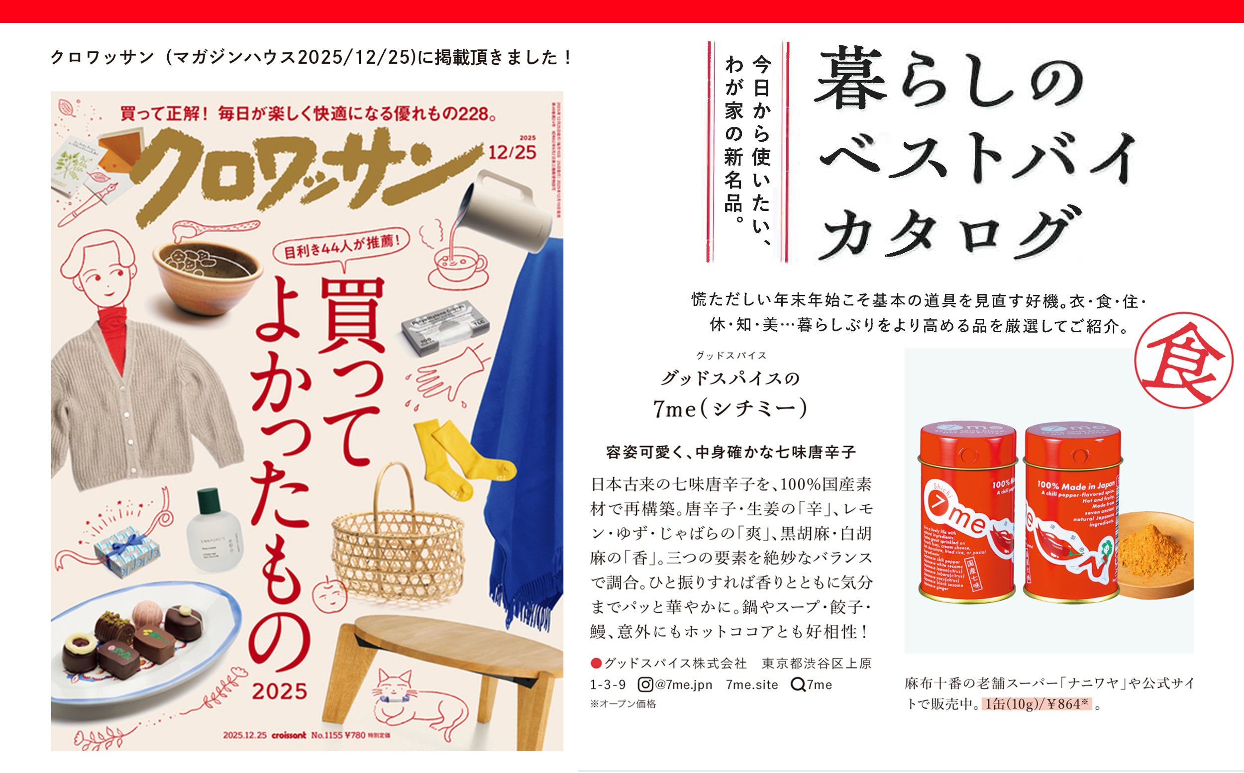 Shichimi Togarashi is a spice that evokes the image of a healthy lifestyle in ancient Japan. Although it comes in a small can, it is full of spices, including chili peppers, and is full of excitement.